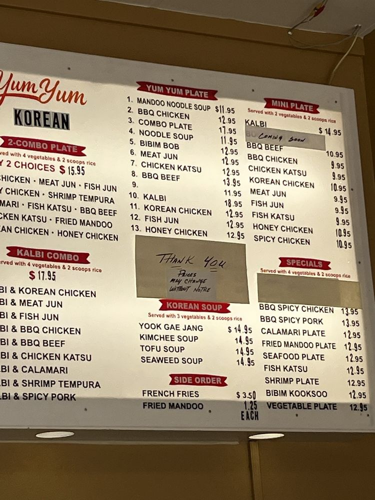 The menu boasts an array of delectable options, including tender Kalbi dishes like Korean Chicken and BBQ Beef, alongside fan favorites such as Honey Chicken and Spicy Chicken. Don’t miss the shrimp tempura or the comforting Yook Gae Jang—both highly recommended.